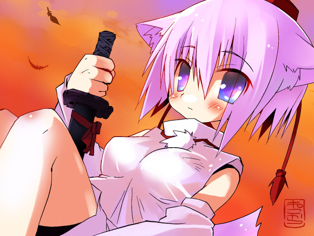 mizuki makoto, touka (utawarerumono), utawarerumono, 00s, 1girl, female focus, head wings, long hair, ponytail, purple hair, solo, wings