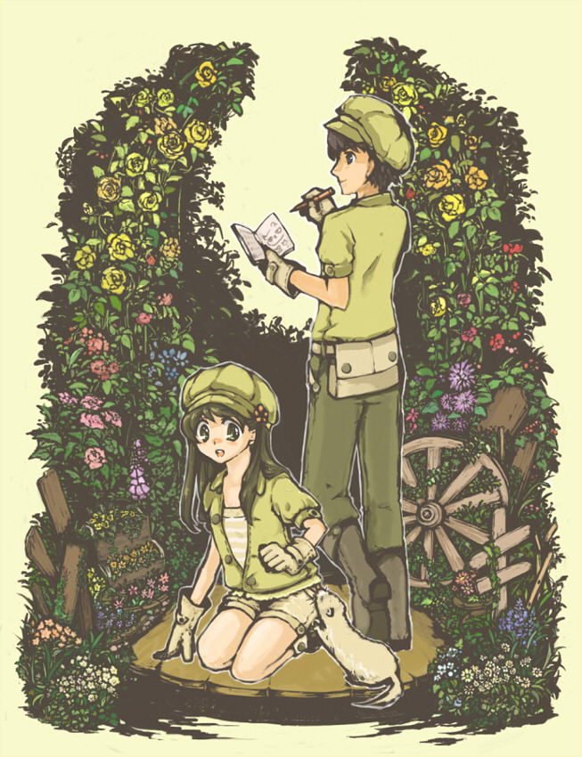 icomemo, barbara (dq6), mireyu, tania (dq6), dragon quest, dragon quest vi, square enix, 3girls, blonde hair, blue eyes, blue hair, blush, cherry blossoms, circlet, flower, forehead, green eyes, high ponytail, long hair, multiple girls, petals, ponytail, purple eyes, red hair, rose, smile