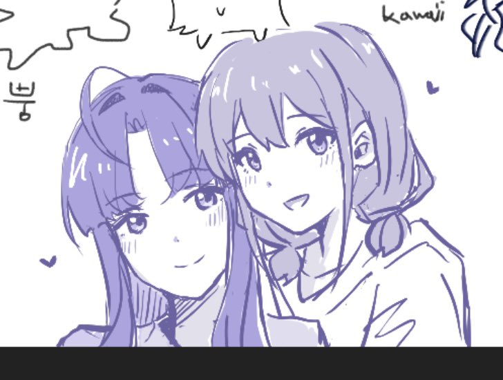 fukumaru koito, idolmaster, idolmaster shiny colors, commentary request, highres, 1girl, alternate costume, apron, artist name, black dress, blue bow, blue bowtie, blush, bow, bowtie, dress, enmaided, fake photograph, fang, frilled hairband, frills, grid background, hairband, half-heart hands, long hair, long sleeves, looking at viewer, maid, mutenka osushi, polaroid photo, skin fang, smile, solo, twintails, upper body, white apron