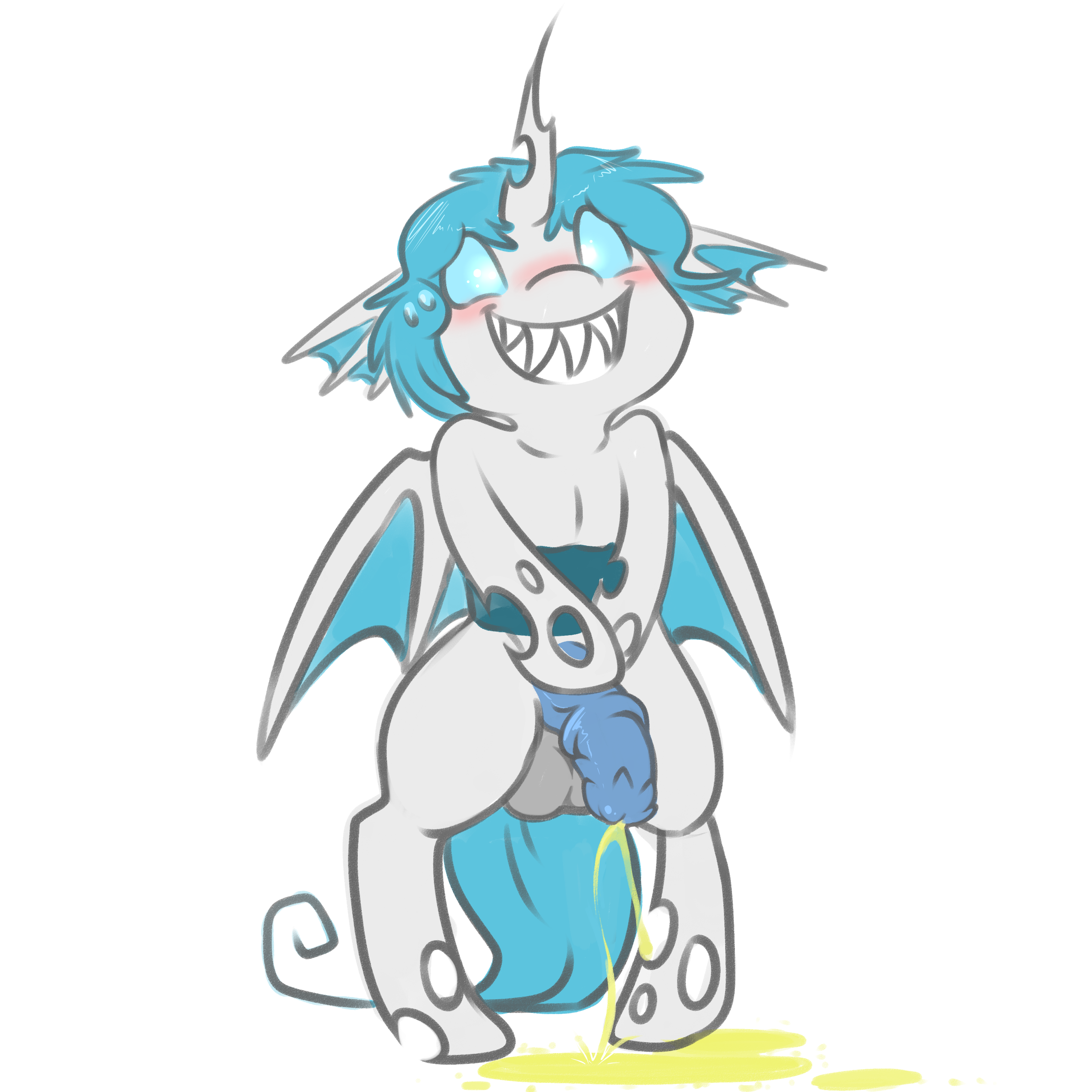 animal genitaliaballsblue eyesblue hairblushchangelingfan characterfangsFlag for Deletionhairhornlanguedocmalepeeingpenissmilesolourinewings