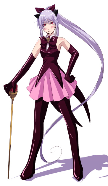 oppai kenmin, naga the serpent, slayers, highres, 1girl, antenna hair, armor, beads, black hair, blue eyes, blush, boots, breasts, cape, circlet, cleavage, earrings, female focus, gloves, jewelry, knee boots, large breasts, long hair, necklace, revealing clothes, skull, solo