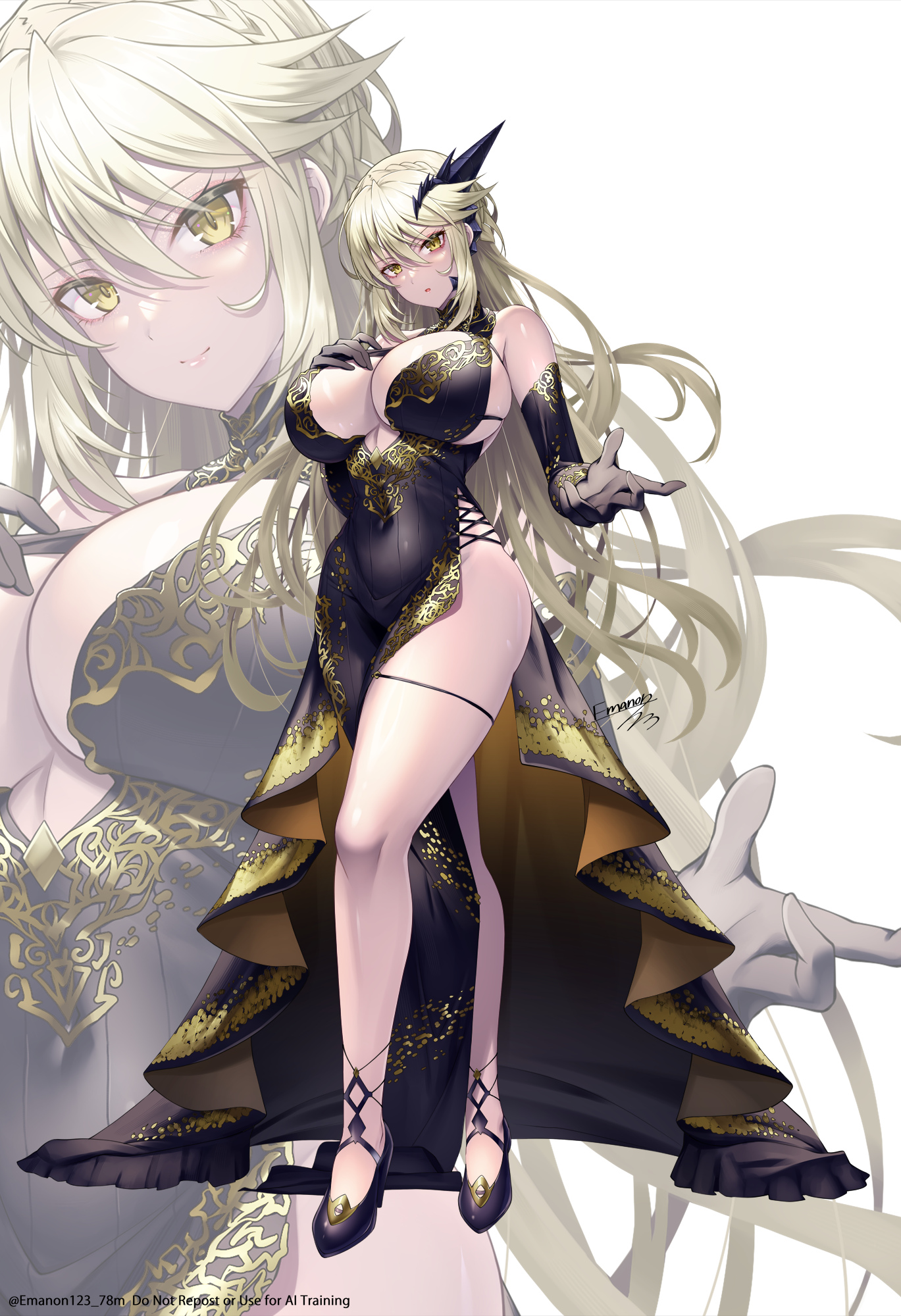 mocchi (mkz), nami (one piece), one piece, commentary, highres, symbol-only commentary, 1girl, bangle, bracelet, braid, braided sidelock, breasts, capelet, cleavage, closed mouth, crop top, crossed legs, full body, fur-trimmed capelet, fur trim, groin, holding, holding staff, jewelry, knees up, large breasts, leg warmers, legs, loincloth, long hair, looking at viewer, midriff, miniskirt, navel, official alternate costume, sitting, skirt, solo, staff, sword, thighs, twitter username, wavy hair, weapon, white background