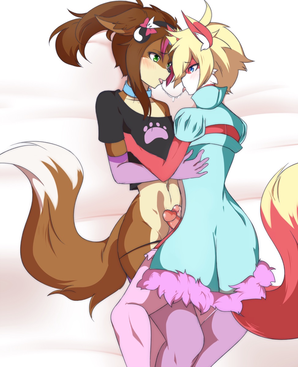 blue eyesblushcaninechokerclothingcumelbow gloveseye contactFlag for Deletiongirlyglovesgreen eyeshairhugmalemammalpenisponytailsalivasaliva stringstrawberry-foxtied hairtonguetranslucent hairyaoi