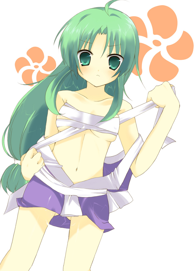 1girlbreastsfemale focusgreen eyesgreen hairjapanese clothesmatching hair/eyesnavelninjasarashismall breastssolo