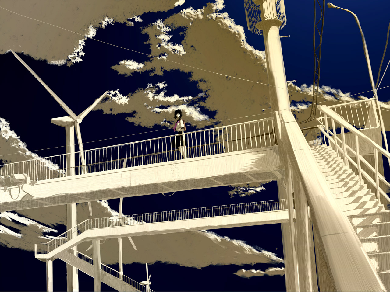 bob cutbridgeclouddayfrom belowfrom sideminiskirtneckerchiefoutdoorsred neckerchiefschool uniformserafukuskirtsolostairsstandingwind turbinewindmill