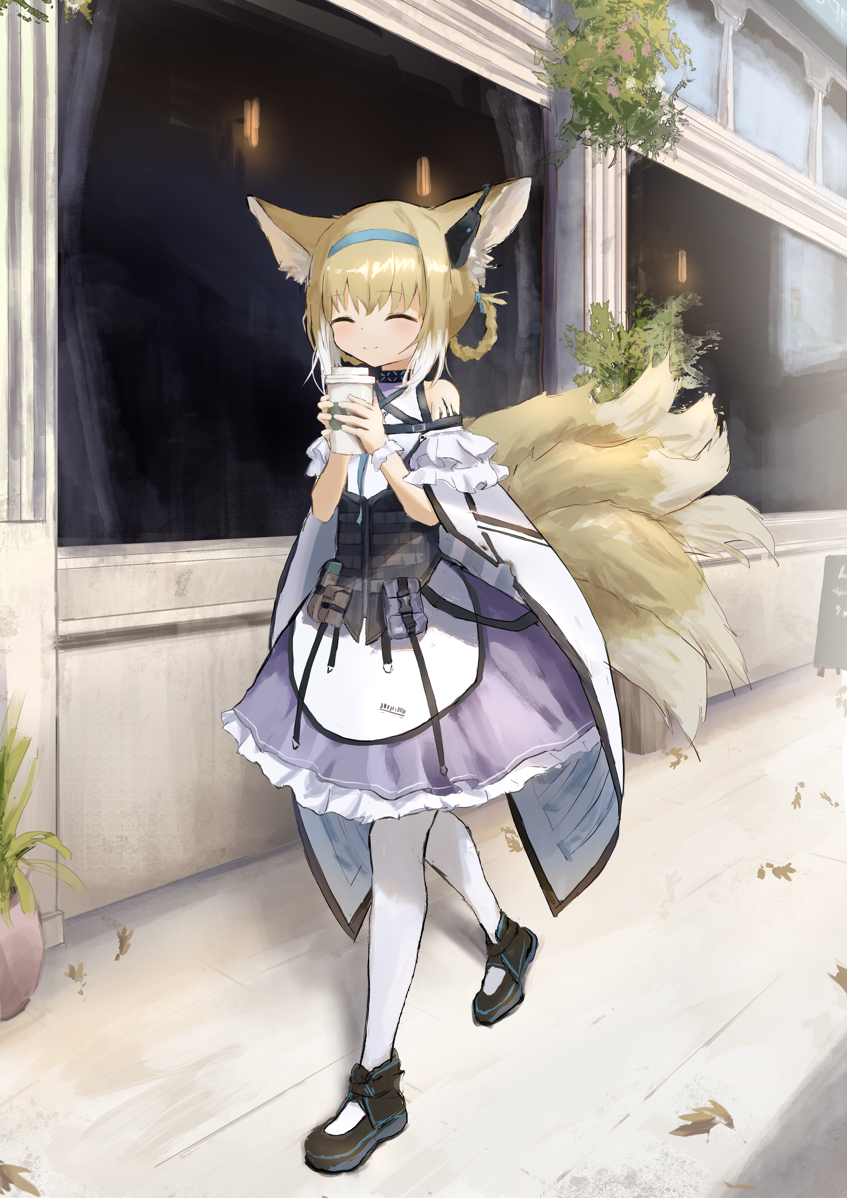 fujimaru ritsuka (female), fate/grand order, fate (series), commentary request, highres, 1girl, ahoge, autumn leaves, black ribbon, blue haori, closed mouth, hair between eyes, hair ribbon, haori, holding, holding leaf, japanese clothes, leaf, long hair, looking at viewer, official alternate costume, orange eyes, orange hair, ponytail, ribbon, shinsengumi, smile, solo, tsukikusa ao, twitter username