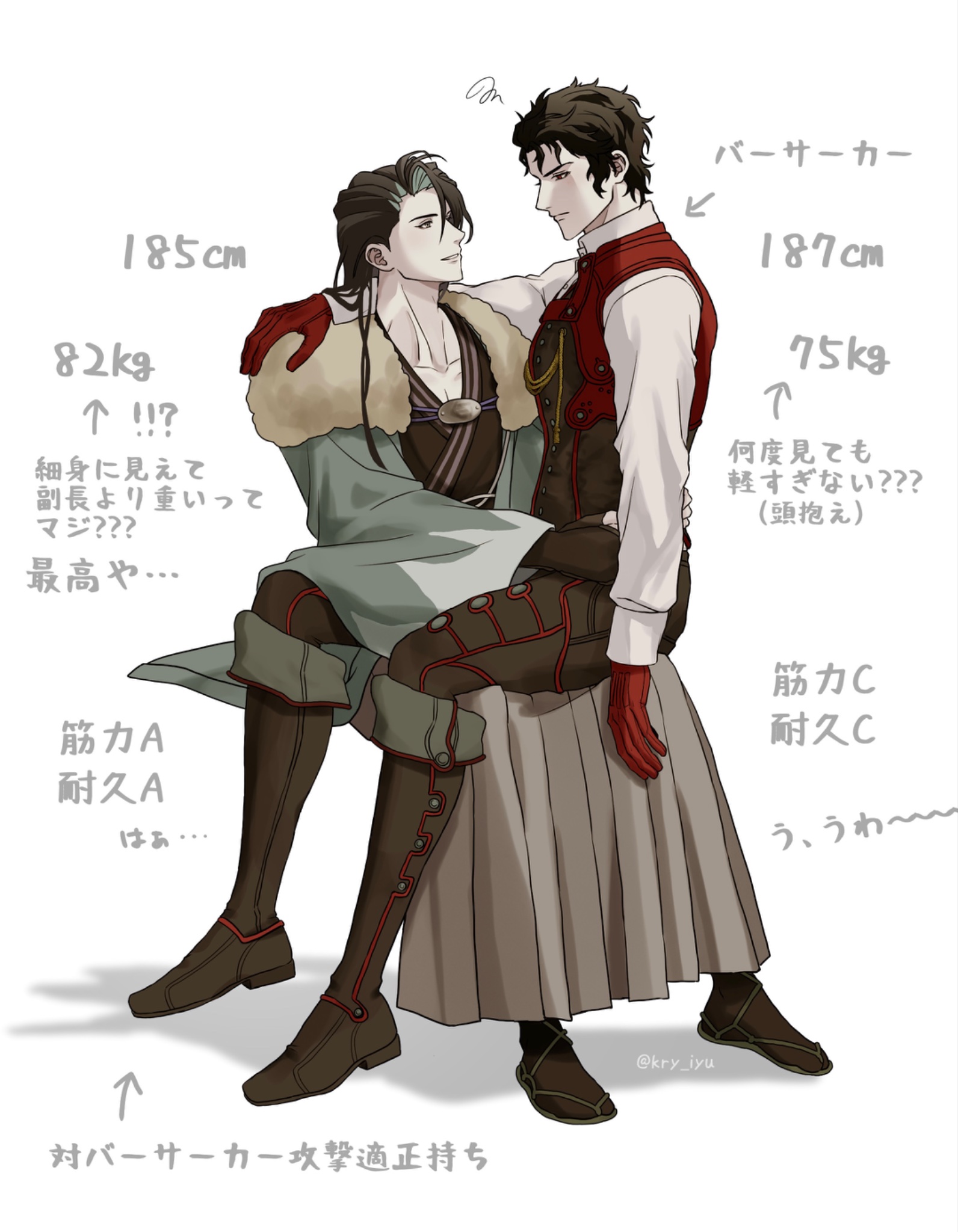 2boysblack hairblack kimonoblue haoribootscurtained hairfull bodyglovesgrey eyesgrey hakamahakamahaorijapanese clotheskimonoknee bootslong hairlooking at anothermale focusmultiple boyspantsred eyesshinsengumishirtshort hairsimple backgroundsittingsitting on lapsitting on personsmilevestwhite backgroundwhite shirtyaoi