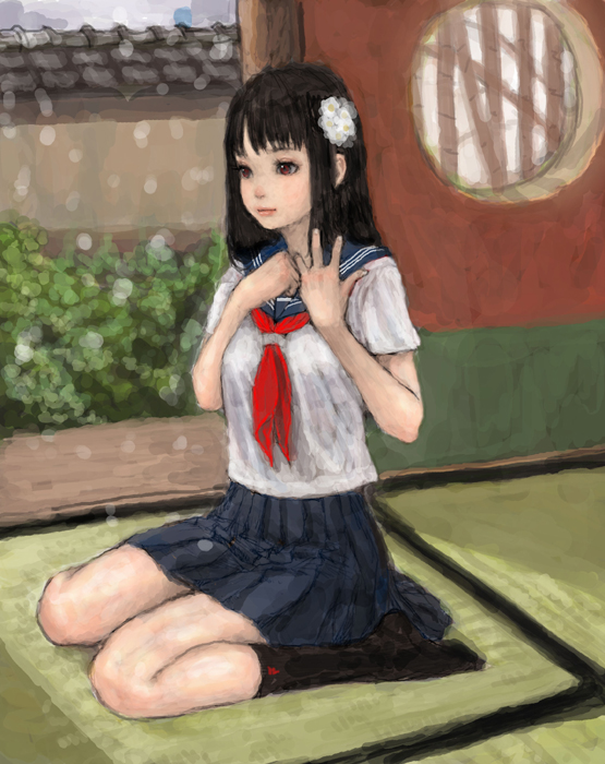photo (medium), 1girl, female focus, panties, school uniform, serafuku, solo, underwear
