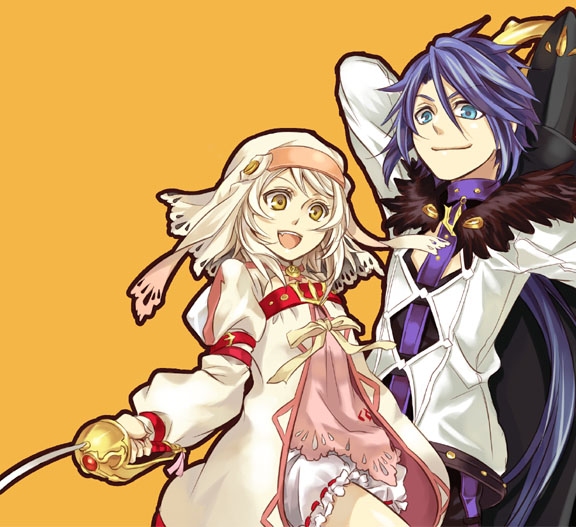 00sbloomersblue eyeslong hairpurple hairrapiershort hairsmileswordunderwearweaponwhite bloomerswhite hairyellow eyes