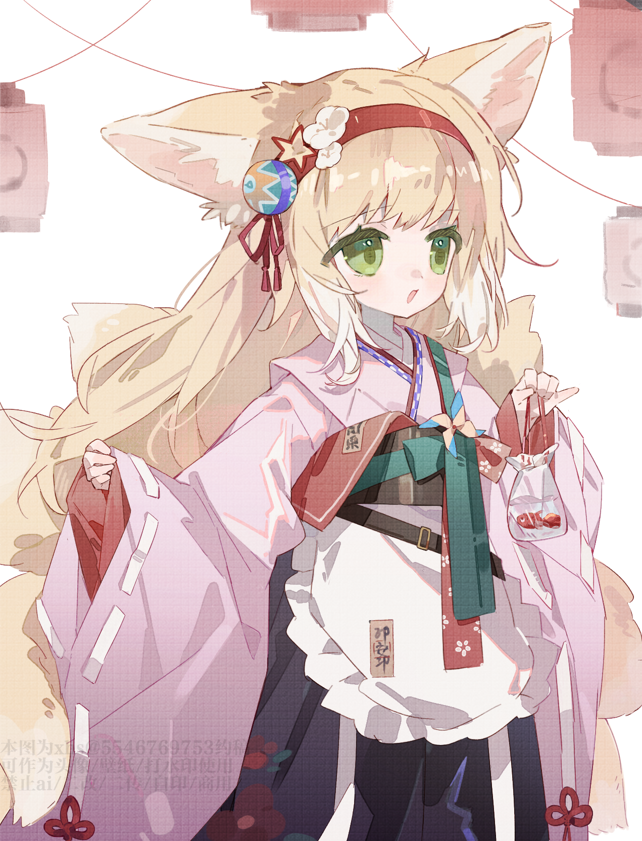 ikeda (cpt), sara gallagher, my-otome, 00s, 1girl, 2006, adapted costume, blonde hair, blue hat, city, dated, female focus, glasses, green eyes, hat, jacket, long hair, long sleeves, oekaki, outdoors, parted lips, ponytail, road, smile, solo, street, tabard, very long hair, walking
