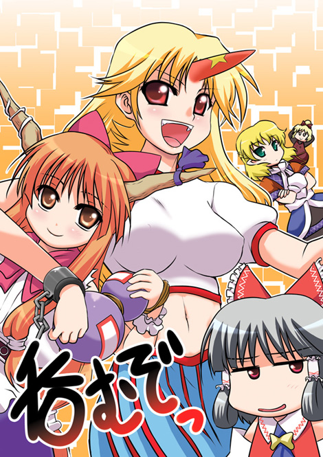 5girlsblack hairblonde hairfemale focusgreen eyeshornslong hairmidriffmultiple girlsnavelorange hairred eyessingle horn