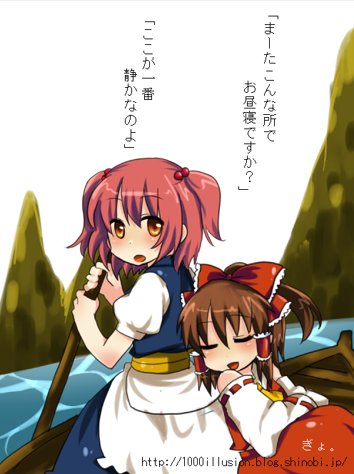 2girlsboatbowbrown hairdetached sleevesfemale focushair bowjapanese clothesmikomultiple girlsponytailred hairrivertwintailstwo side upwatercraft
