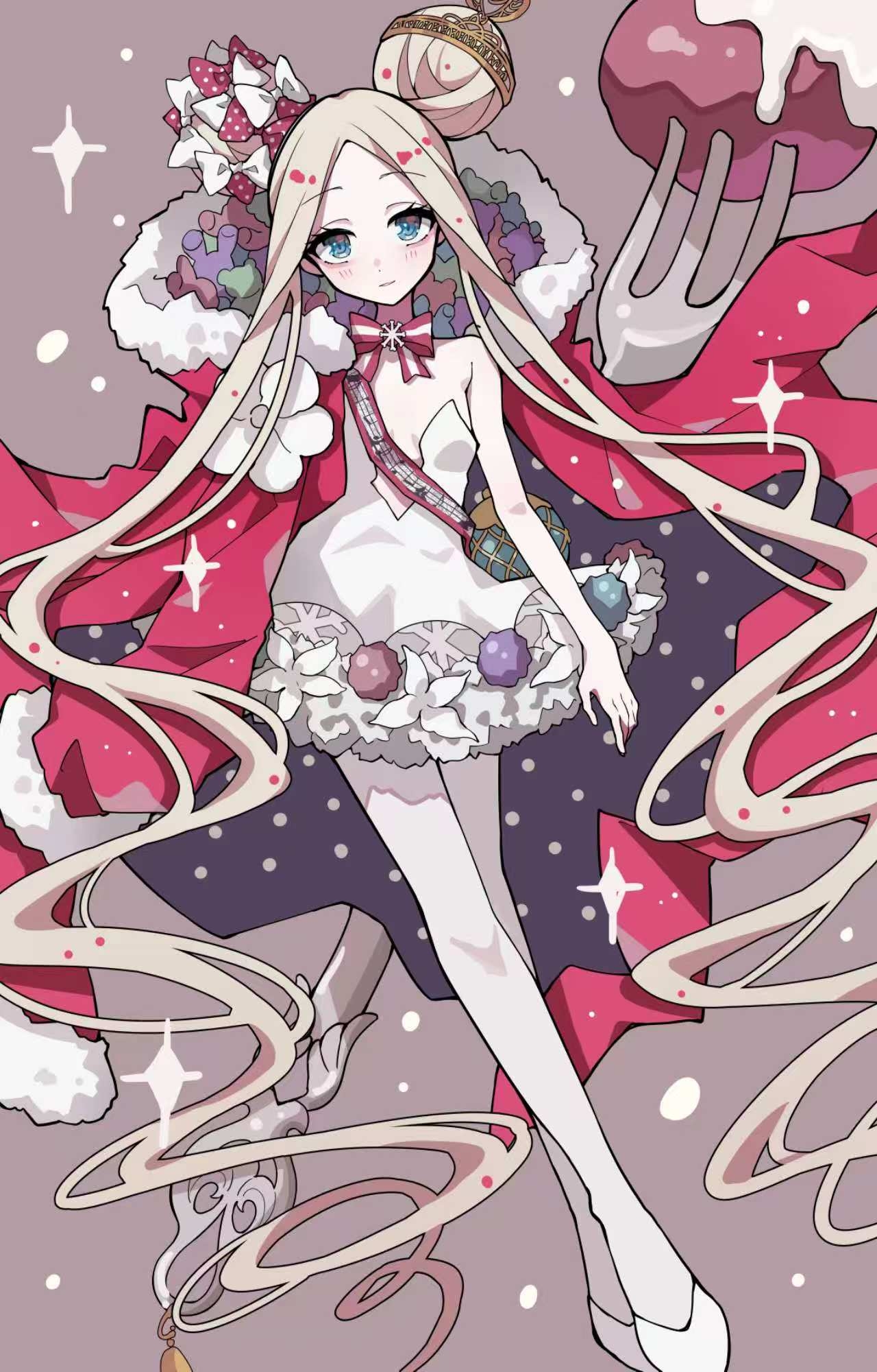 1girlbare shouldersblonde hairblue eyesblushbowbrown backgroundchristmascloakdouble bundressen pointeeyelashesforeheadfur trimfur-trimmed cloakgiant forkhair bowhair bunhigh heelslight smilelong hairlooking at viewerparted bangsred bowskinnysmilesnowflake ornamentsolostraplessstrapless dressvery long hairwhite bowwhite dress