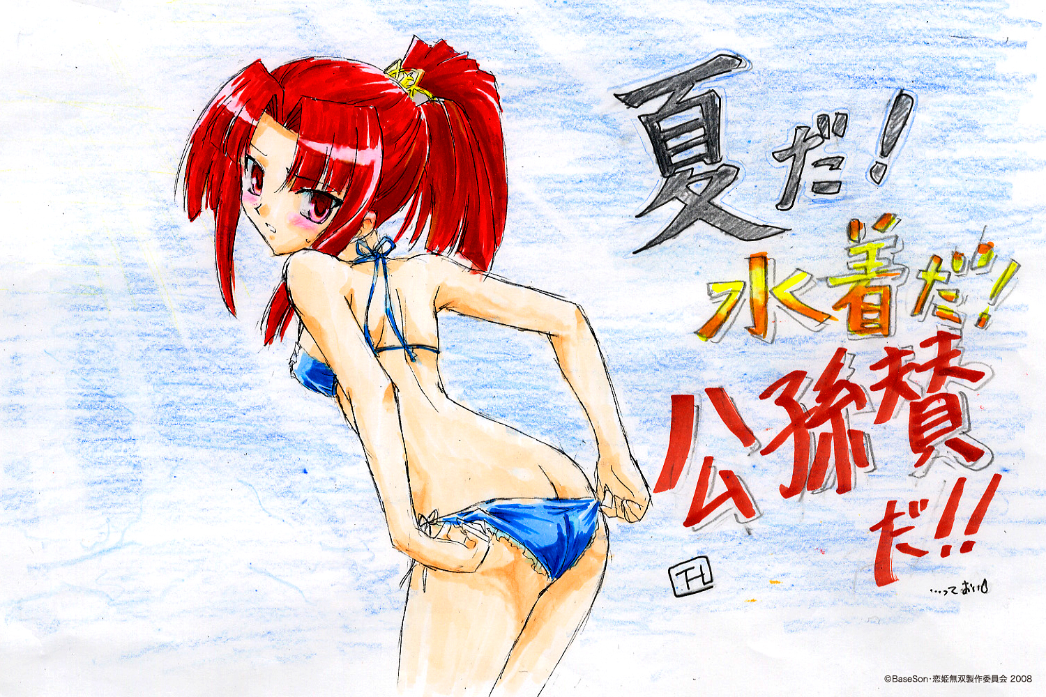 hinohoshi ataru, murasame shino, miko x mono, game cg, non-web source, 1girl, bent over, blush, book, breasts, brown hair, female focus, green eyes, hair ornament, hairclip, nipples, panties, short hair, solo, topless female, underwear, undressing