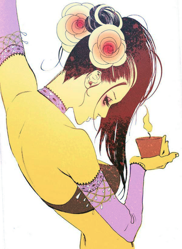 1girlarmletbackblack haircandlechokerdetached sleevesfemale focusflowerhair ornamentjewelrylong hairsimple backgroundsolo