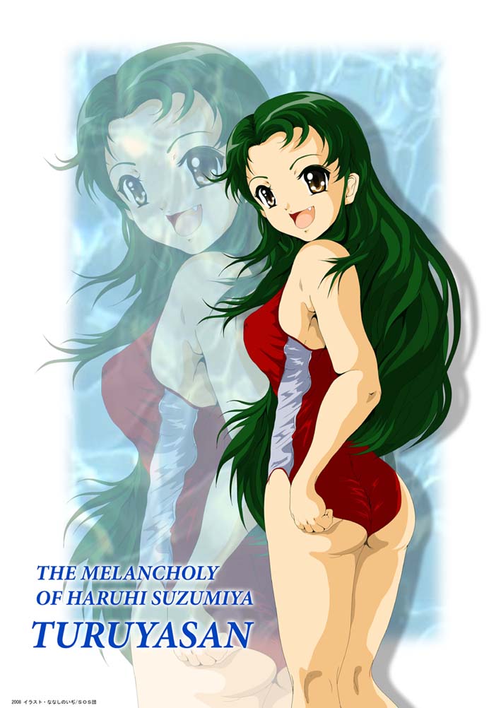 00s1girlassbrown eyesfangfemale focusgreen hairlong hairone-piece swimsuitsoloswimsuitvery long hair