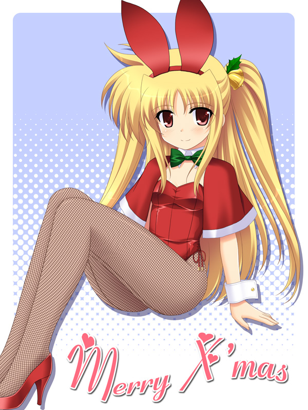 00s1girlanimal earsbellblonde hairblushcapeletchristmasdetached collarfake animal earsfemale focusfishnet pantyhosefishnetshair bellhair ornamenthalftonehalftone backgroundhigh heelslooking at viewermerry christmaspantyhoseplayboy bunnyrabbit earsred eyesred shoesshoessmilesolotwintails