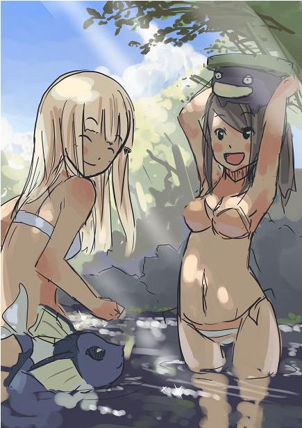 1boy2girlsarmpitsarms upbikiniblonde hairblush stickersbrown hairclosed eyesdaygen 1 pokemongen 3 pokemonlight rayslong hairmidriffmultiple girlsnavelpantiespokemon (creature)riverside-tie bikini bottomside-tie pantiessmilestriped bikinistriped clothessunbeamsunlightswimsuitunderwearwadingwater