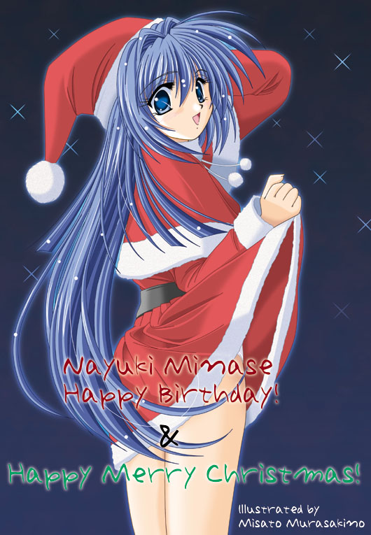 1girlartist nameblue eyesblue haircapeletchristmasclothes liftfemale focuslong hairmatching hair/eyespantiespantyshotred skirtsanta costumeskirtskirt liftsolounderwear