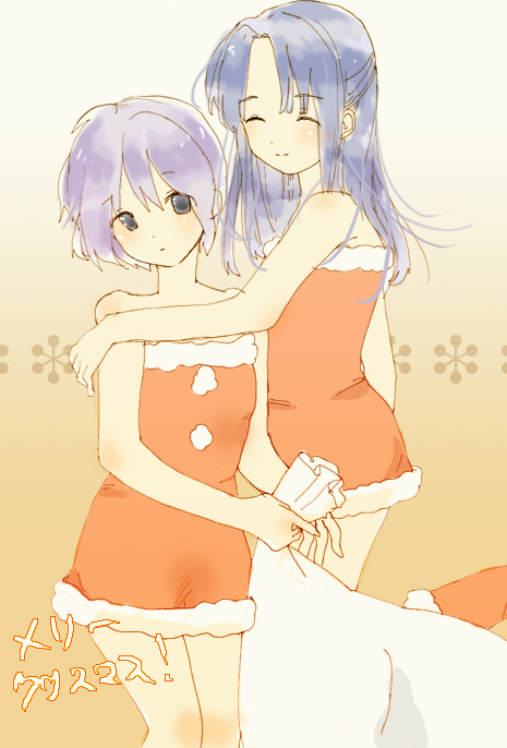 kochoko, kawazoe tamaki, kuwahara sayako, suzuki rin, bamboo blade, 00s, 2girls, :d, blush, expressionless, greyscale, looking at viewer, monochrome, multiple girls, open mouth, ribbon, sailor collar, school uniform, serafuku, simple background, smile, surprised, twintails, upper body, white background, wide-eyed