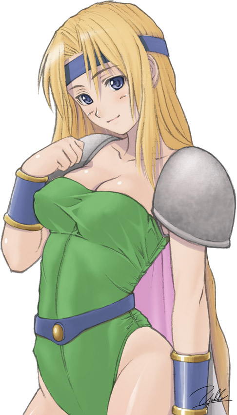 1990s (style)1girlarmorbeltblonde hairblue eyesblushbreastscapecleavageclenched handcontrappostocovered erect nipplescowboy shotfemale focusfrom sidehead tiltheadbandhighleghighleg leotardlarge breastsleotardlight smilelong hairlooking at viewerparted bangspauldronsretro artstyleshoulder armorshoulder padssignaturesimple backgroundsketchsmilesolostandingtaut clothesvambracesvery long hairwhite background