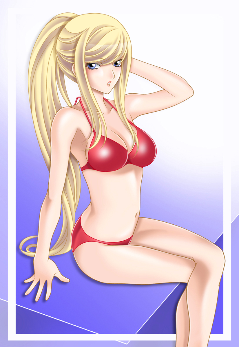 kotona elegance, zoids, zoids genesis, 00s, 1girl, blue eyes, blush, breasts, covered navel, cowboy shot, female focus, hand in own hair, large breasts, long hair, monochrome, panties, pantyshot, simple background, skin tight, solo, standing, underwear, very long hair