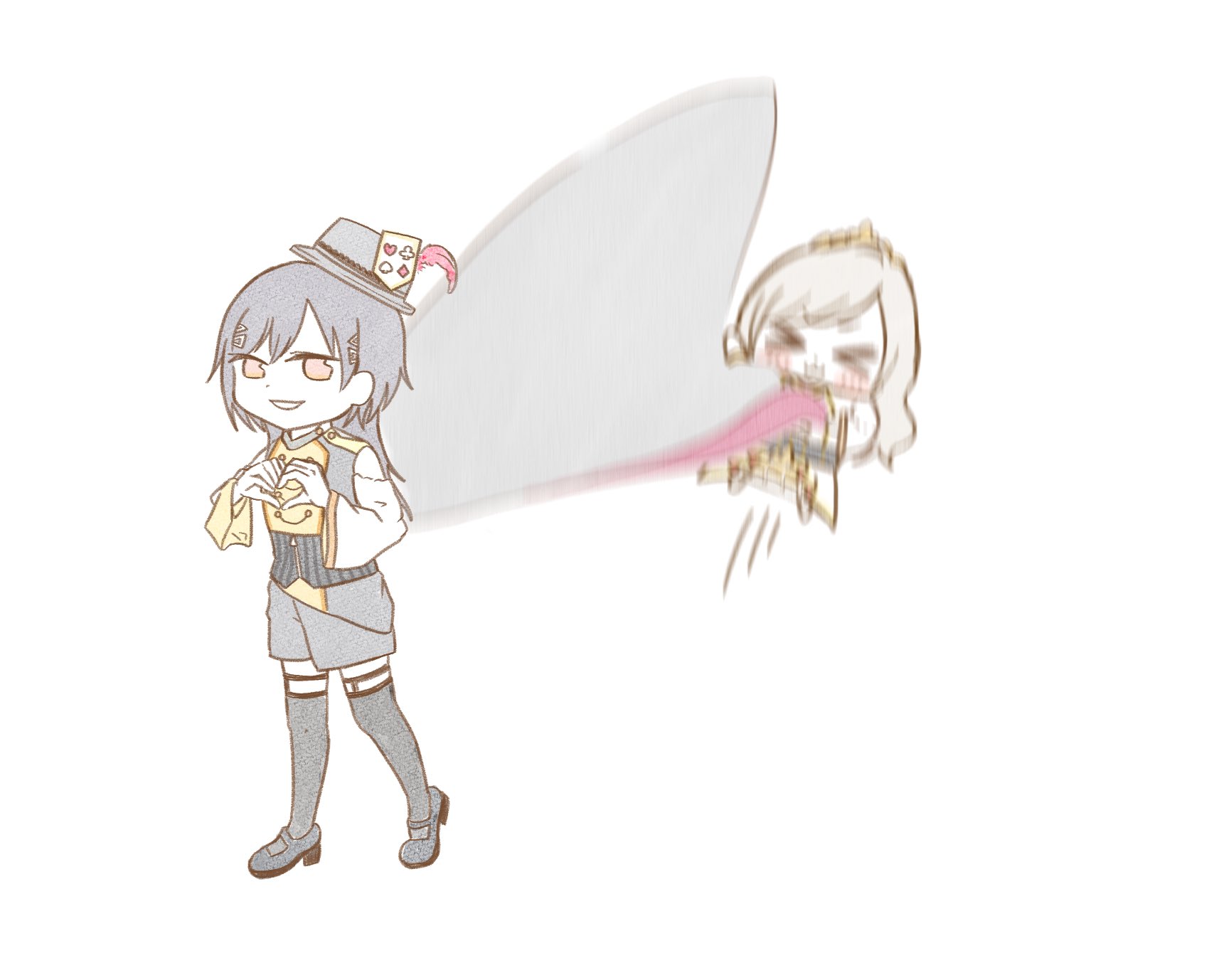 :31boy2girlsblack shoesblack thighhighsbuttonscapechibiclosed eyesclosed mouthclothing cutoutdouble-breastededel noteedeliededelied cape flipfacing viewergrey capegrey hairgrey shortsgrinhair ornamentheartheart handsjellyfish cutlegwear garterlong hairlong sleeveslooking at viewermiyake miumotion blurmultiple girlsofficial alternate costumeorange eyesshoesshortsshoulder cutoutsimple backgroundsmilethighhighstriangle hair ornamentvirtual youtubervoice actor connectionwavy hairwhite backgroundx3