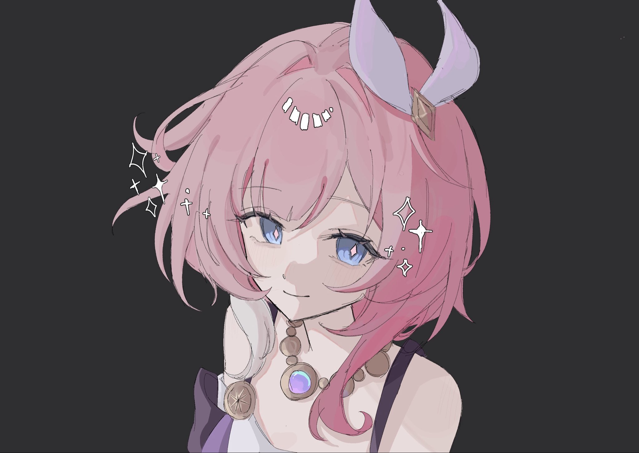 1girlbare shouldersblue eyesbreastscoatcyrene (aedes elysiae) (honkai: star rail)dressgrey backgroundhair ornamentjewelrylooking at viewermulticolored hairnecklacepink hairpurple coatshort hairsimple backgroundsmall breastssmilesolotoha tm11two-tone hairupper bodywhite dresswhite hair
