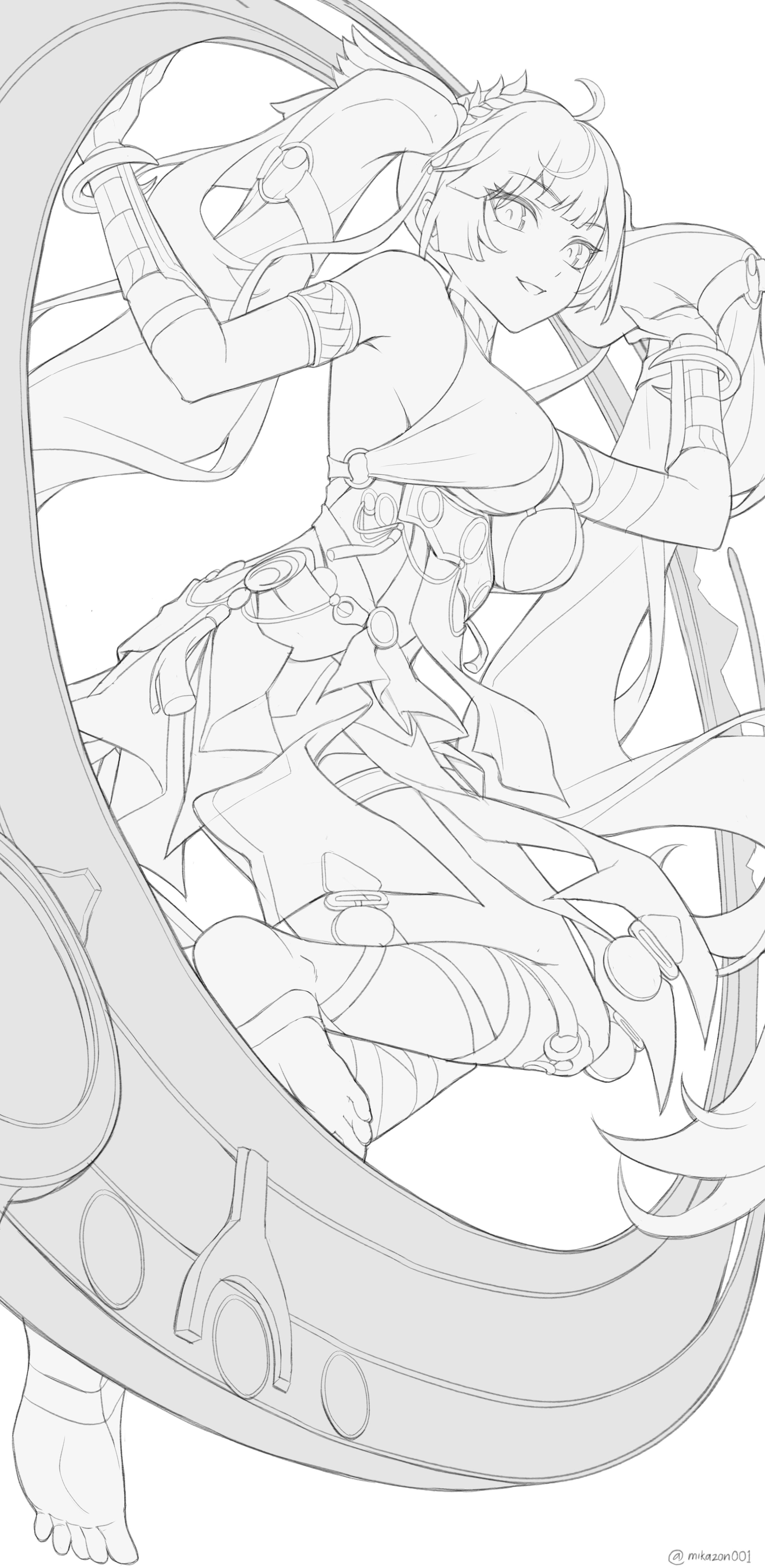 shouttie, nahida (genshin impact), scaramouche (genshin impact), wanderer (genshin impact), genshin impact, hashtag-only commentary, highres, 1boy, 1girl, alternate costume, animal, armor, blunt ends, boots, braid, cat, clenched hand, coat, cross-shaped pupils, crown braid, english text, eyelashes, facing another, fur collar, fur sleeve cuffs, greyscale, hair between eyes, hair ornament, half crown braid, hand in pocket, hand up, hat, holding, holding animal, holding cat, index finger raised, japanese armor, japanese clothes, jingasa, jitome, kimono, kote, leaf, leaf hair ornament, light blush, long hair, long sleeves, looking at animal, looking at another, looking at viewer, monochrome, open mouth, pointy ears, sanpaku, scarf, side ponytail, sidelocks, sketch, smirk, speech bubble, squinting, symbol-shaped pupils, tareme, v-shaped eyebrows, winter clothes, winter coat, wispy bangs