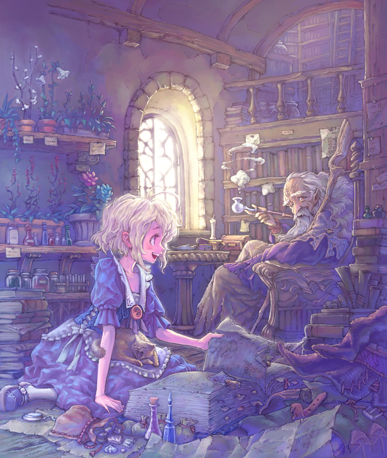 1boy1girlabsurdly detailed compositionanimalanimal on lapantenna hairbagblonde hairbookcatdaydrawstringdrawstring bageyelashesfantasyhair slicked backholdingholding smoking pipeindoorskiseruloaded interioroldold manon lapplantpointy earsroomroomscapeshort hairsittingsmokesmoking pipestaffwooden floor