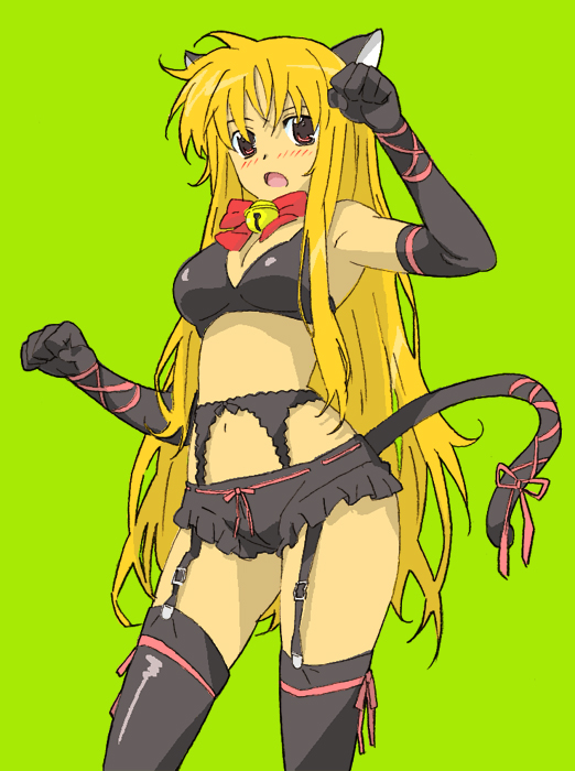 00sanimal earsbellblack pantiesblonde haircat earscat tailelbow glovesgarter beltglovesjingle belllong hairpantiessolotailthighhighsunderwearvery long hair