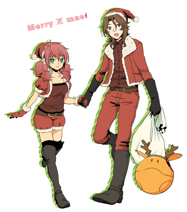 kabocha, kabocha (monkey4), me-tan, tohsaka rin, fate/stay night, fate (series), os-tan, 00s, 2girls, braid, breasts, brown eyes, brown hair, crossover, grabbing another's breast, green eyes, green hair, groping, long hair, medium breasts, multiple girls, twintails