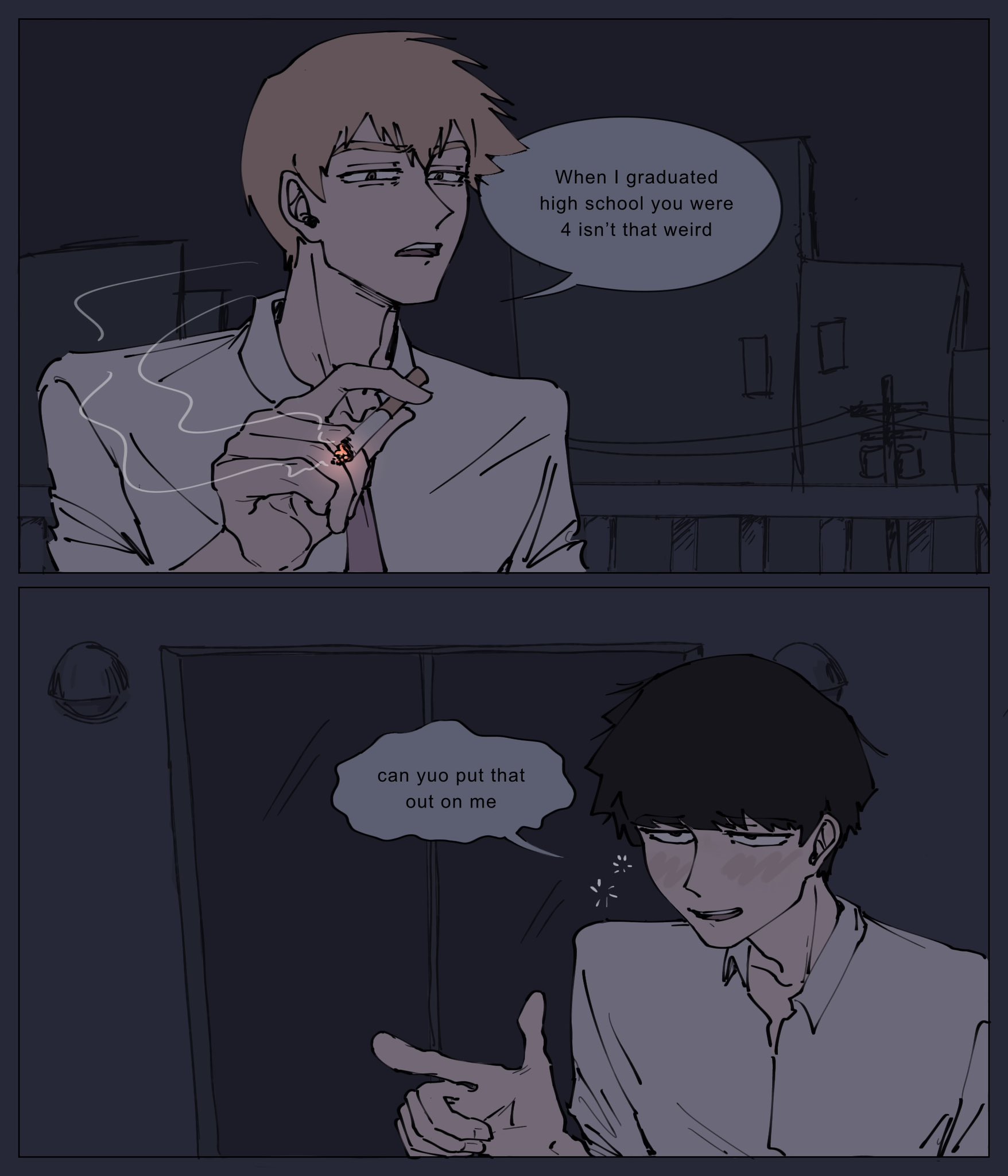 100popsicle2boysage differenceaged upblack hairblushcigaretteholdingholding cigarettemale focusmememultiple boysnecktieshort hairsmilespeech bubbleyaoi