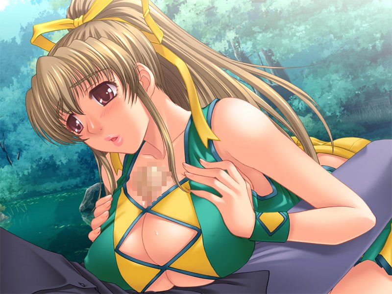 hirose wataru, komine minamo, player character (mabinogi), mabinogi, bad id, bad pixiv id, 1girl, blue eyes, breasts, cleavage, female focus, green hair, long hair, pointy ears, solo