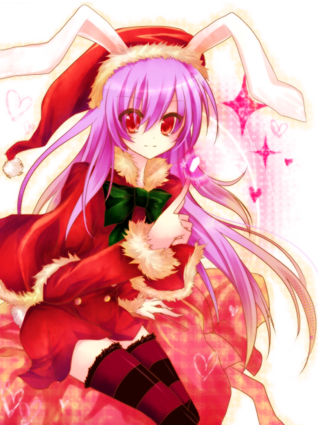 1girlanimal earschristmasfemale focuspurple hairrabbit earsred eyessanta costumesolothighhighs