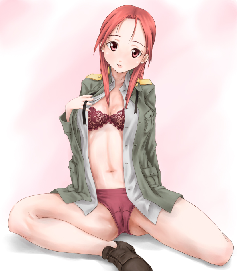00s1girlbracameltoefemale focuslegslingerielong hairnavelopen clothesopen shirtpantiesred brared eyesred hairred pantiesshirtsittingsmilesolounderwear