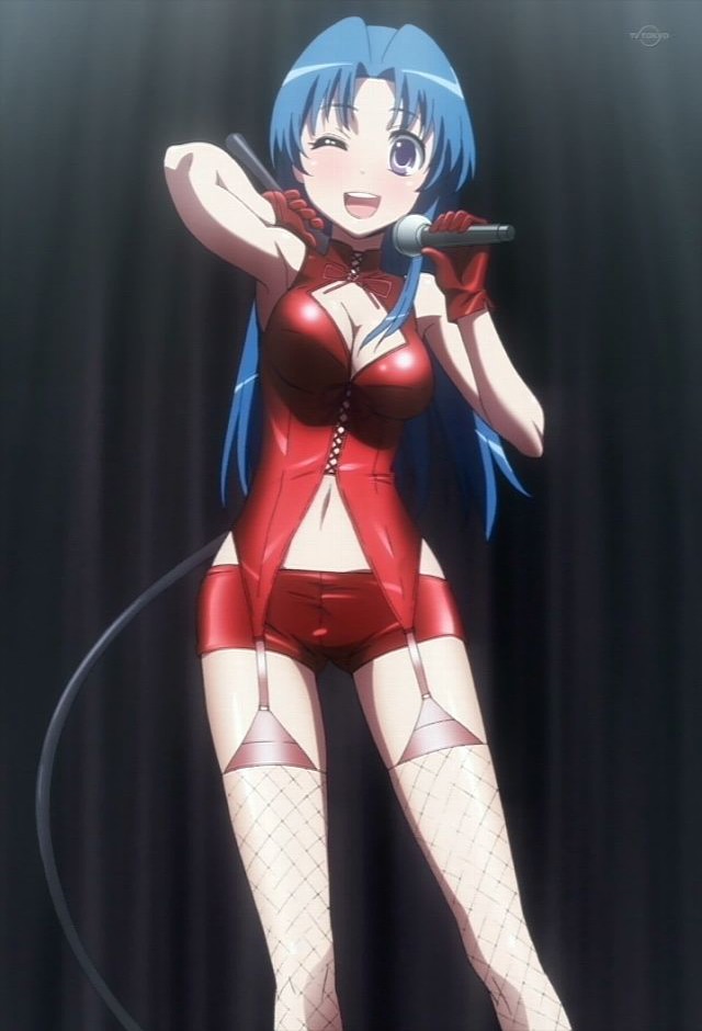 00s1girlblue eyesblue hairbreastscleavagefemale focusfishnet thighhighsfishnetsmatching hair/eyesmedium breastsmicrophoneshort shortsshortssolothighhighswhip