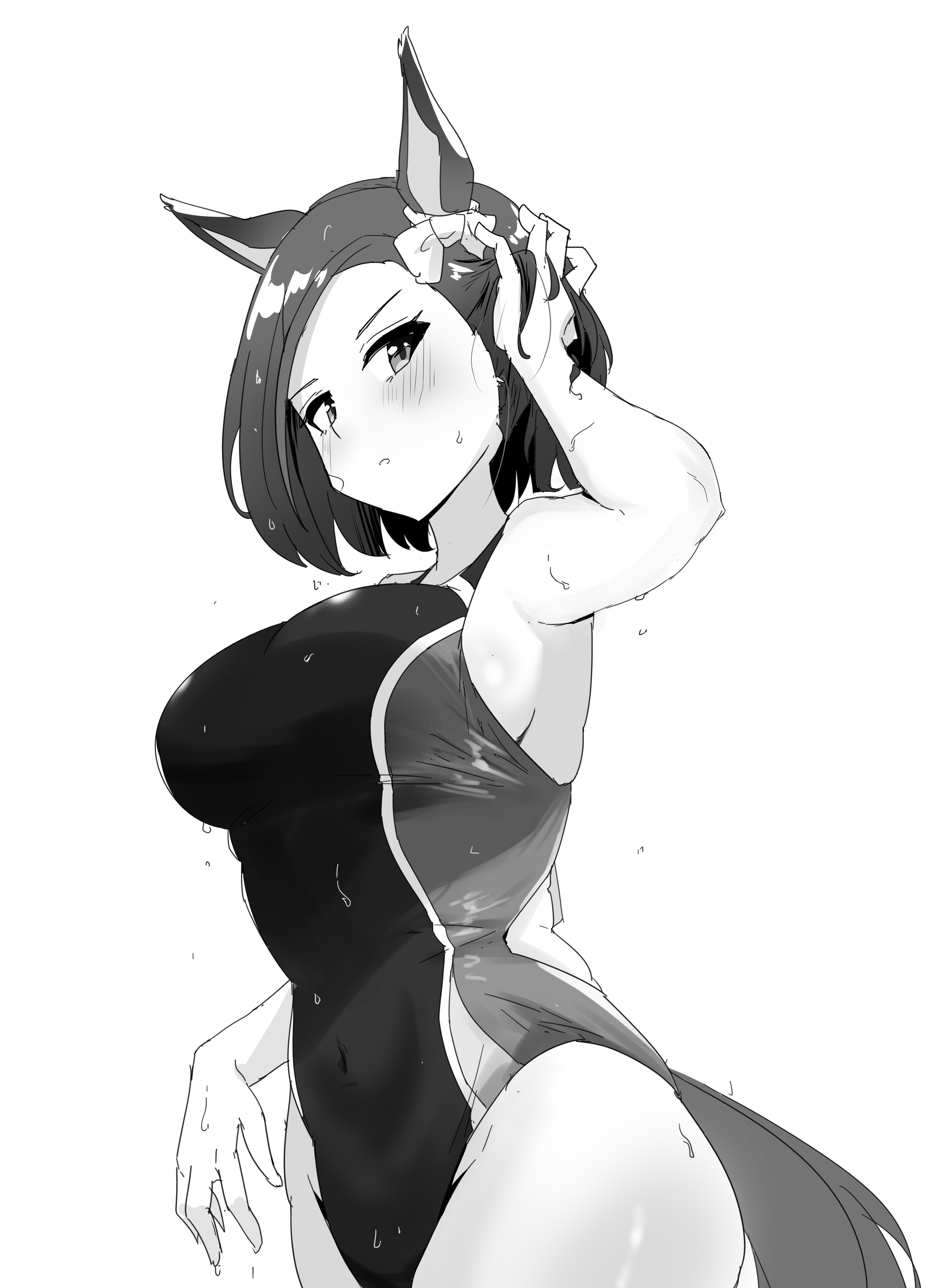 usatarou, 6+girls, ass, back, bare shoulders, barefoot, bent over, black hair, blonde hair, breast envy, breasts, brown hair, clothes pull, competition school swimsuit, curvy, feet, female focus, glasses, huge breasts, kneeling, large breasts, lineup, long hair, looking at breasts, looking back, multiple girls, one-piece swimsuit, one-piece swimsuit pull, one-piece tan, pink hair, plump, ponytail, purple hair, school swimsuit, shiny skin, short hair, simple background, sitting, small breasts, soles, spanking, spread legs, swimsuit, tan, tanline, topless female, towel, white background