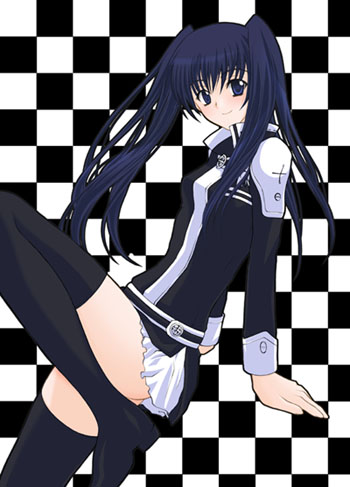 00s1girlblack jacketblue eyesbootscheckered backgroundcrossfemale focusjacketlong hairskirtsolothighhighstwintails
