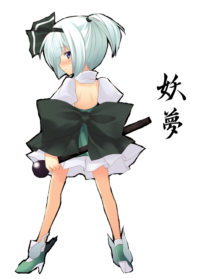 wendy (artist), zosumaru, yagokoro eirin, touhou, silver hair, bad id, bad pixiv id, 1girl, blue eyes, bow (weapon), breasts, character name, dress, female focus, hat, large breasts, solo, weapon, white background