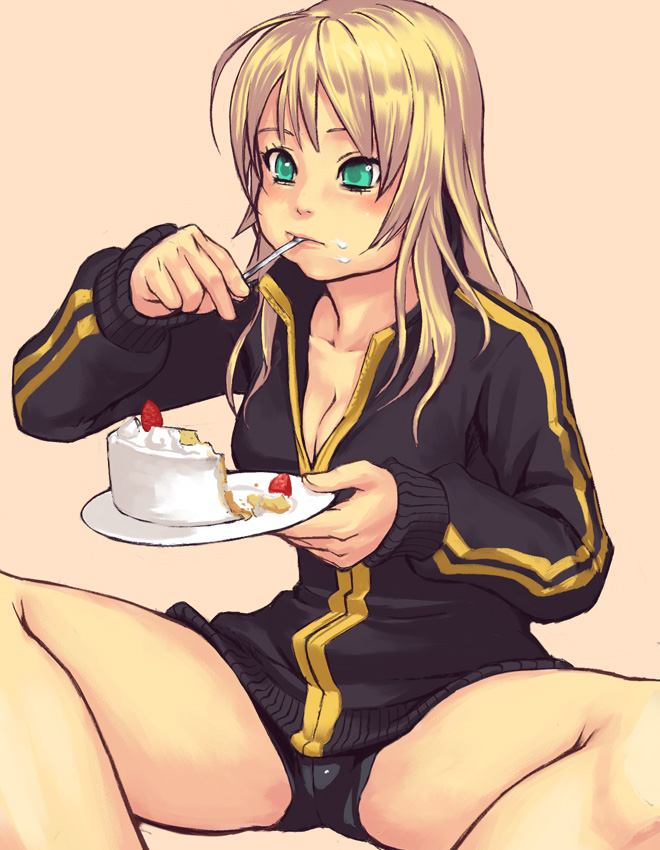 shu (arknights), arknights, absurdres, chinese commentary, commentary request, highres, 1girl, aqua eyes, bare shoulders, beads, belt, blonde hair, blue hair, closed mouth, colored extremities, dragon girl, dragon horns, earrings, grey hair, hair between eyes, hair intakes, holding, holding sword, holding weapon, horns, jacket, jewelry, light smile, long hair, long sleeves, looking at viewer, multicolored hair, necklace, off shoulder, outline, pointy ears, solo, strapless, sword, tianbiandeqinghaiyao, tube top, very long hair, weapon, white belt, white jacket, white outline, white tube top, yellow background