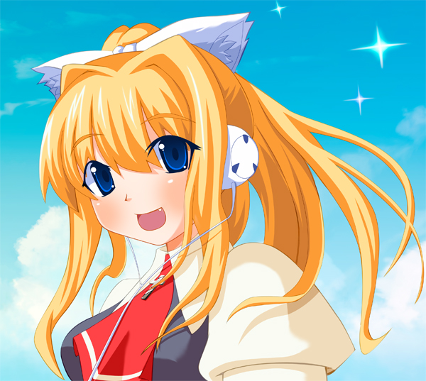 verina (wuthering waves), wuthering waves, absurdres, highres, 1girl, bare shoulders, blonde hair, blue sky, blurry, bug, butterfly, cloud, day, dress, flower, grass, green dress, green eyes, green hair, green hairband, hair rings, hairband, hill, holding, holding flower, insect, long hair, looking at viewer, outdoors, qianbihezhong, sky, smile, solo, standing, yellow eyes