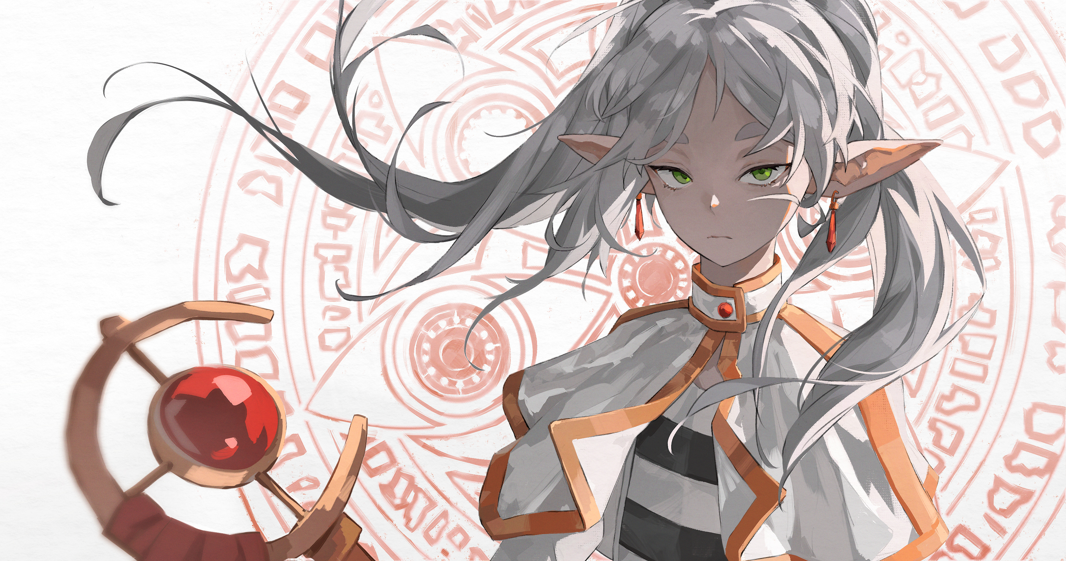 tsuyuka (sunny spot), adell (disgaea), rozalin, disgaea, makai senki disgaea 2, nippon ichi, lowres, 1boy, 1girl, blonde hair, blush, bow, dress, pointy ears, red hair, strapless, strapless dress, wings, yellow bow