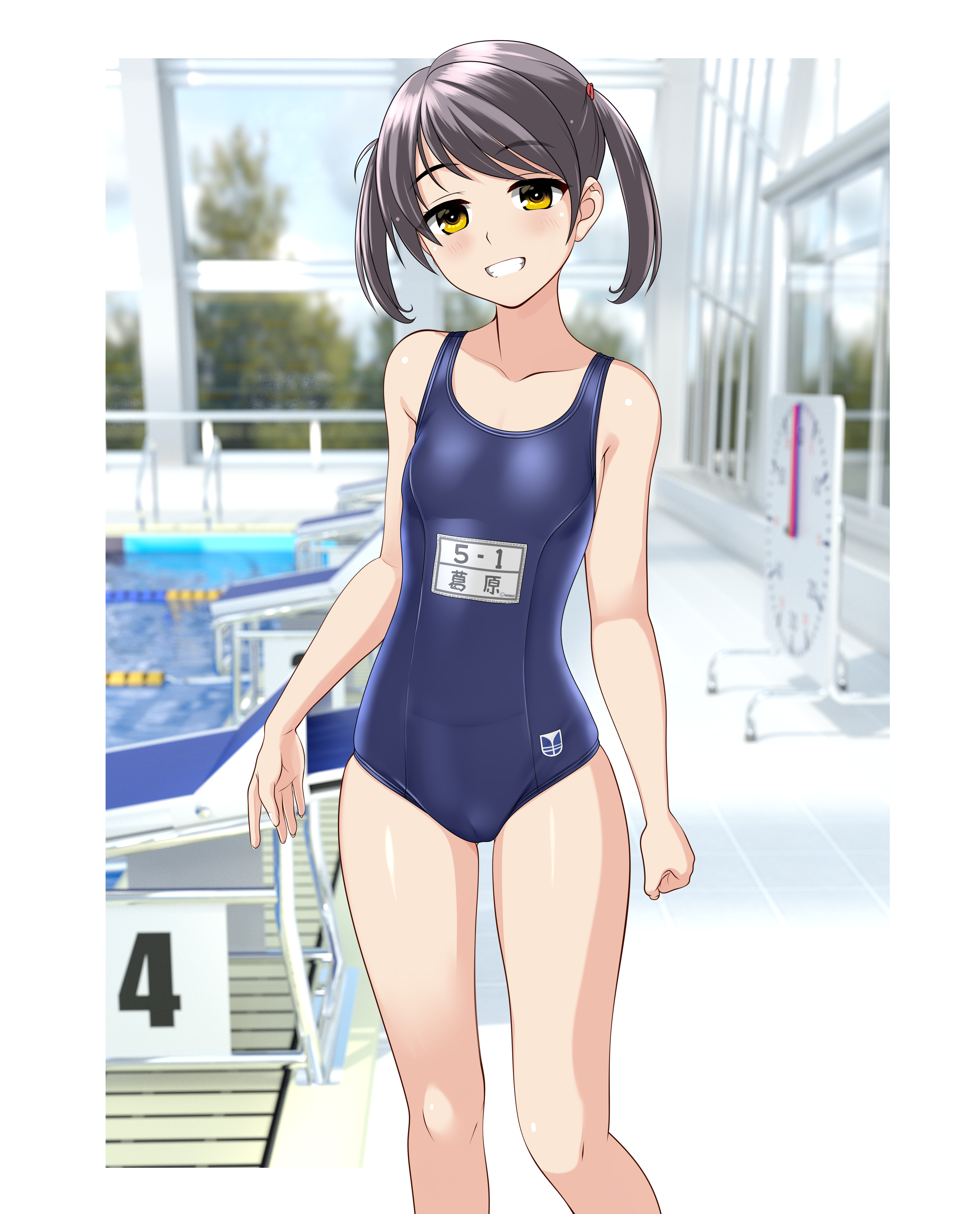 necropoi, agnes tachyon (umamusume), umamusume, highres, 1girl, ahoge, animal ears, bikini, black bikini, chemical structure, cowboy shot, criss-cross halter, earrings, halterneck, horse ears, horse girl, horse tail, huge ahoge, jewelry, lab coat, looking at viewer, multi-strapped bikini bottom, shower head, single earring, smile, solo, swimsuit, tail, wet