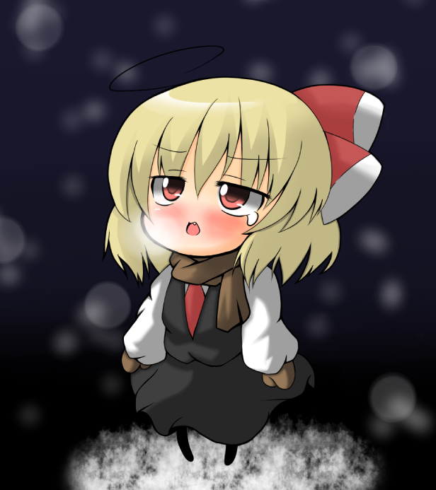 tdk, onozuka komachi, touhou, 1girl, alternate hairstyle, bun cover, chibi, double bun, fang, female focus, full body, hair bun, happy, red hair, scythe, simple background, smile, solo, spread legs, standing, white background