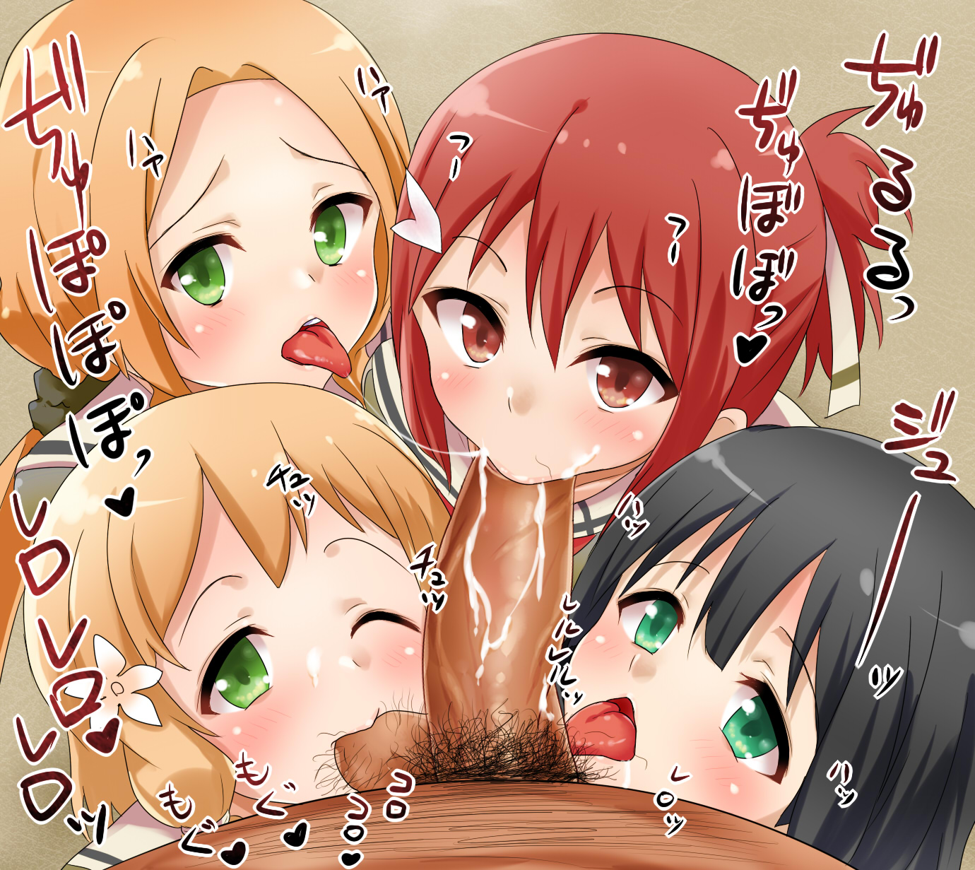 ooba kagerou, kumonomi misora, sora wo tobu mittsu no houhou, game cg, third-party edit, 1girl, all fours, ass, bent over, blue eyes, blush, female focus, from behind, no panties, one eye closed, pussy, red hair, school uniform, serafuku, solo, tears, thighhighs, top-down bottom-up, uncensored, white thighhighs, wink