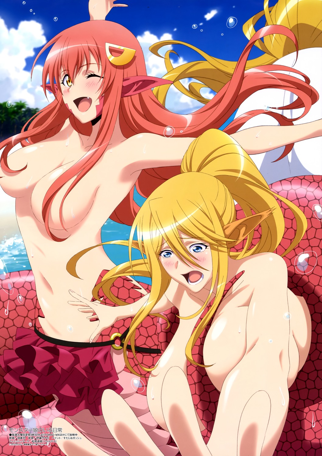 oota minoru, hiiragi kagami, hirano aya, izumi konata, suzumiya haruhi, kanon, lucky star, suzumiya haruhi no yuuutsu, lowres, non-web source, 2girls, ahoge, blue eyes, blue hair, cosplay, green eyes, long hair, mole, mole under eye, multiple girls, one eye closed, purple hair, school uniform, serafuku, suzumiya haruhi (cosplay), twintails, voice actor connection, wink