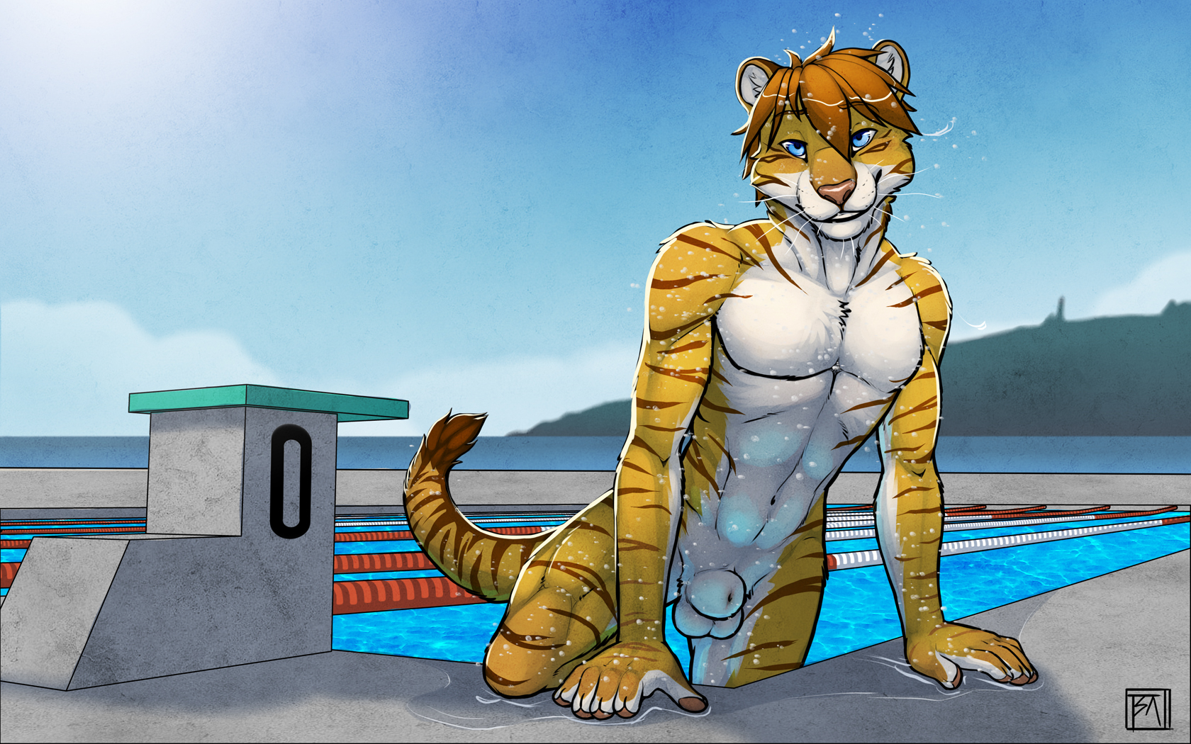 nagi ryou, shurelia (ar tonelico), ar tonelico, ar tonelico i, gust, highres, official art, 00s, 1girl, aged down, bare shoulders, blue eyes, braid, dress, female focus, flat chest, frown, hair ornament, hands on own hips, long hair, sandals, skirt, sleeveless, solo, twin braids, white dress, white hair, white skirt
