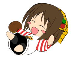 1boy1girl3danpanblushblush stickersbreadchibiclosed eyesfemale focusfoodhappylyingon backshort hairsolo