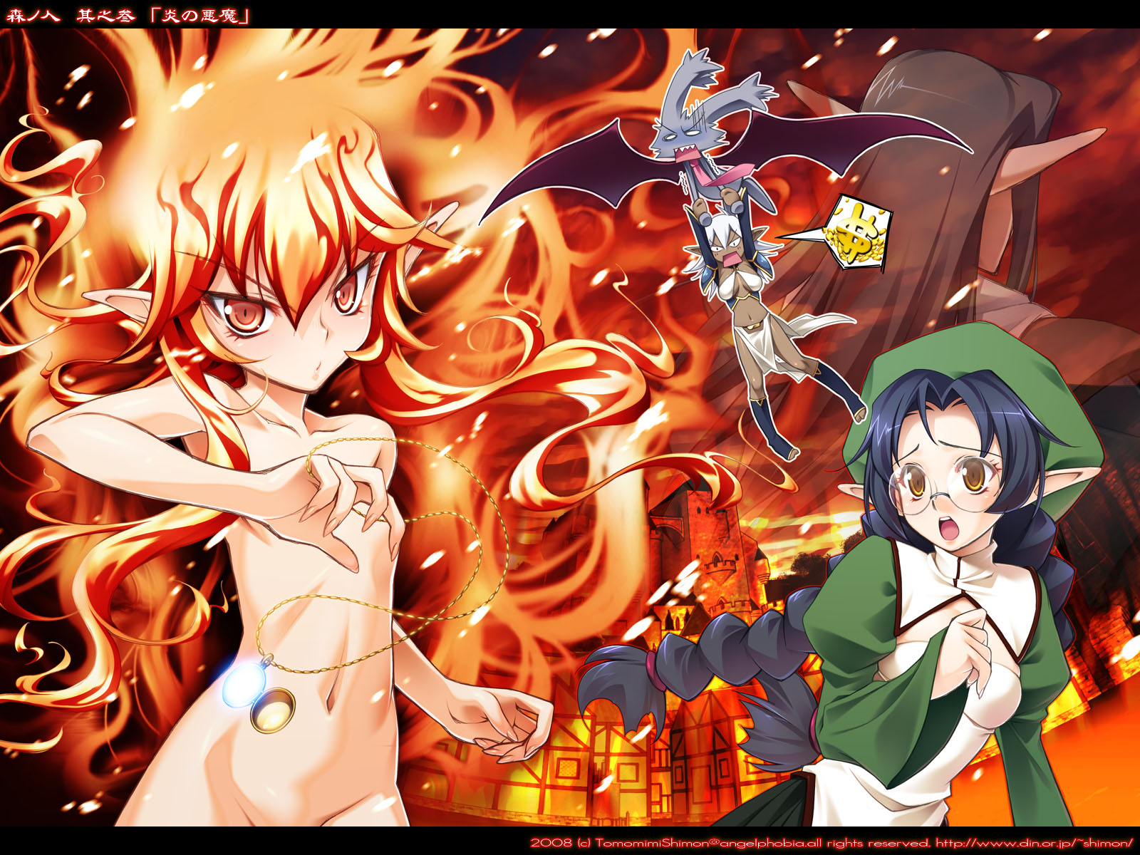 braiddark skindark-skinned femalefiery hairfireflat chestglasseshatlong hairnavelnudeorange eyespocket watchpointy earsprojected insetred hairtsurimetwin braidswatch